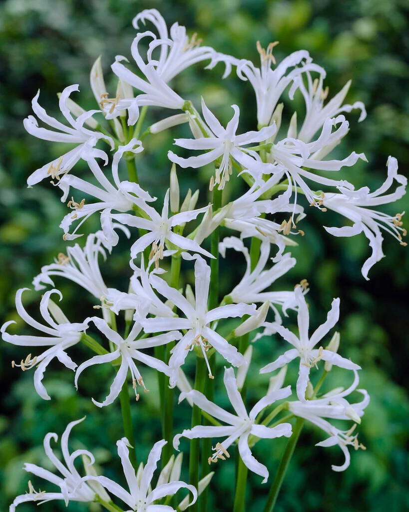 Cveta u septembru/oktobru kad većina drugog cveća prestane da cveta. Ako je vreme lepo cvetanje može da potraje dugo. Cveta belim cvetovima na čvrstim stabljikama. Uske latice savijene unazad na čisto belim cvetovima u obliku trube i istaknutim prašnicima.Cvetovi su veoma pogodni za rezano cveće ali i za sadnju u baštama ili posudama. Sade se u proleće nakon mraza. Voli sunčane i zaklonjene položaje. Zimi ih treba zaštititi slojem malča.
